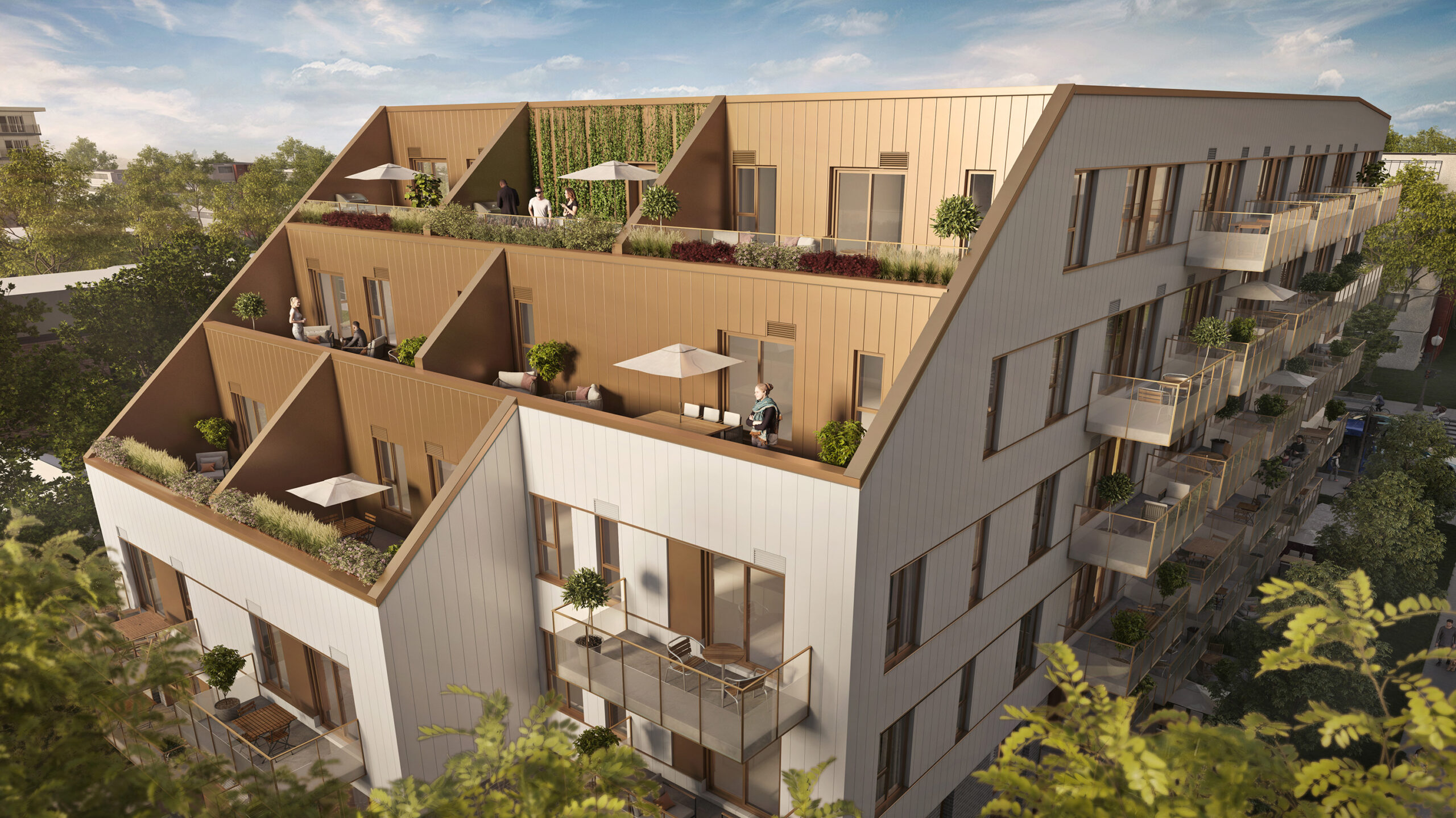 Le Diago se distingue par une ligne diagonale audacieuse qui sculpte les trois derniers étages, créant de vastes terrasses en gradins idéales pour la belle saison. Avec ses matériaux soigneusement choisis, son style contemporain et sa structure en béton, c’est bien plus qu’un simple immeuble : un véritable lieu de vie chaleureux.