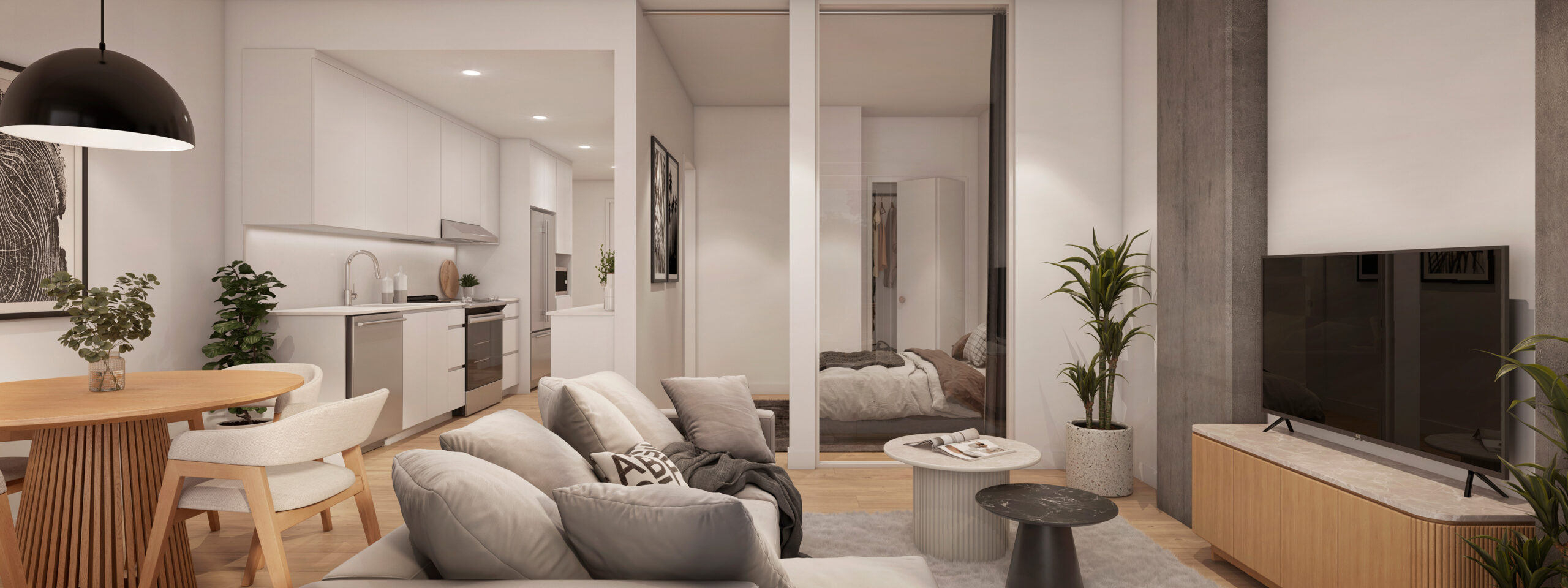 Découvrez des appartements neufs et lumineux, idéalement situés sur la route de l’Église. Profitez de l’effervescence d’un quartier où tout est accessible à pied ou à vélo. Un milieu de vie qui marie parfaitement confort, simplicité et design moderne.