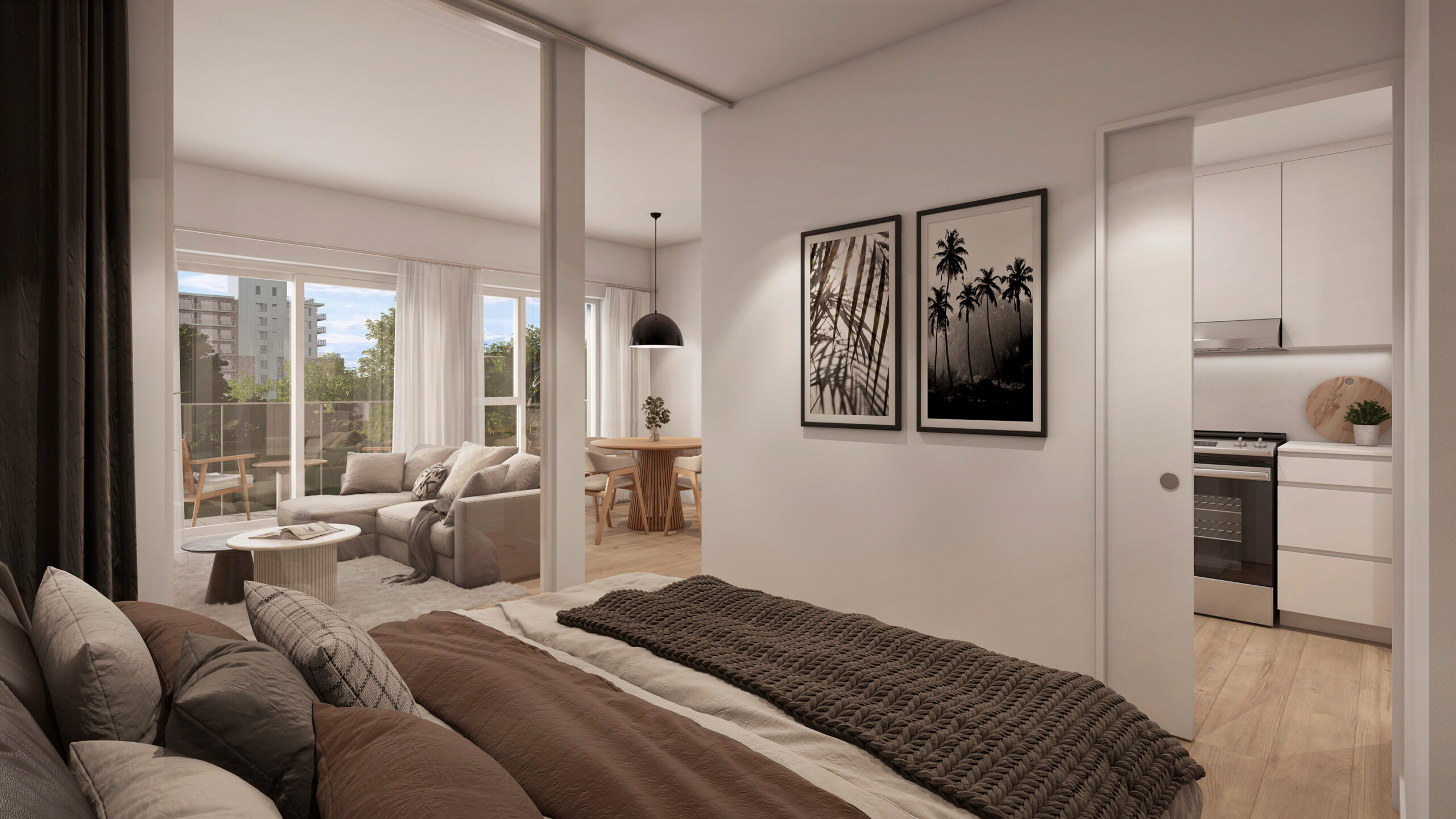 Le caractère du béton apparent rencontre la pureté des cuisines blanches. Des espaces modernes et lumineux, intelligemment optimisés pour offrir un confort absolu et un style affirmé.